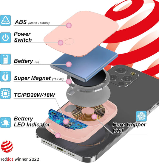 Power Bank, 10000Mah Wireless Portable Charger 18W Fast Charging 20W Quick Charge with Type C Cable Battery Pack for Iphone 16/15/14/13/12 Series